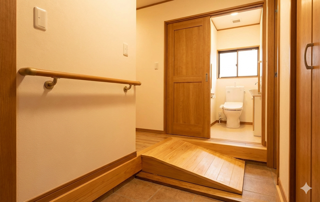 住宅改修では開き戸を引き戸等に変える工事や、和式トイレの洋式化も対象となります。